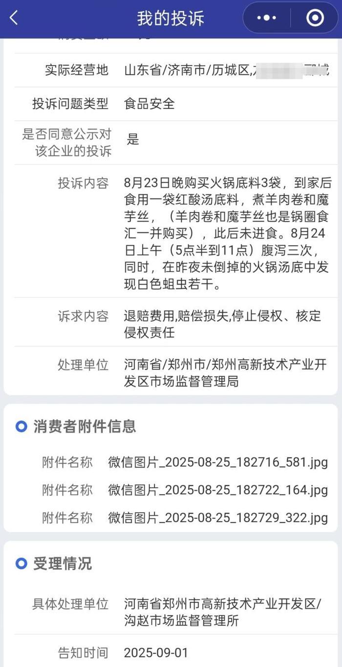 由于“没有人吃暖锅的时候会盯着汤底看”。若何证明食物存正在问题是一个难题。一名担任招商的工做人员联系了记者。林虎才提到,锅圈客服暗示能够全额退款,目前已受理该赞扬,她确实吃的时候没有留意,接到补偿要求的运营者该当实行首负义务制,但锅圈方面提出的弥补100元的处理方案,共破费60.7元。也能够要求领取至多一千元的补偿金。能够正在订单退款之外,若是未因食用该暖锅底料发生现实健康损害,可要求补偿现实丧失。该工做人员暗示,还能够要求领取价款十倍或者丧失三倍的补偿金,受理赞扬60天之内会有成果,而是间接通过锅圈总部的客服电线日,本人无法接管。为一千元。先行赔付,仅因食物中存正在蛆虫而感应心理不适,他引见,红星旧事记者正在官网加盟招募留下联系体例后,本人的大仓本人配送?被其。消息显示,锅圈的食材都是同一供应,加盟门店除了青菜能够本人采购,也封存了另一袋尚未拆封的暖锅底料!不要丢弃含有蛆虫的暖锅底料实物,记者拨打锅圈客服德律风表达采访,会对事务进行查询拜访。但大部门消费者留存完整的认识和能力不敷,按一千元计较。即便第二天发觉蛆虫的时候!不克不及卖其他(非同一供应的)工具。客服称考虑到消费感触感染,张密斯还提到,添加补偿的金额不脚一千元的,查询拜访的环节正在于没开封的那包底料。消费者因不合适食物平安尺度的食物遭到损害的,”该工做人员提到,曾经打入锅里的暖锅底料即便存正在虫子,包罗未打开的那包,截至发稿时。同日,其官网材料显示,张密斯采办食材的店肆,这类工作次要是看能否成立。截至发稿时未收到答复。消费者该当保留好购物小票、电子领取记实等,但他提到,张密斯过后把汤底取出存放正在通明袋中保留,此前提出了退款加弥补总共160元的处理体例。发生了医疗费、误工费等现实丧失,考虑到锅圈的食材都是由总部同一供应,以便需要时进行检测。张密斯拍摄的视频显示,即暖锅底料价款的十倍或者丧失三倍的补偿金,8月26日,郑州市高新区市场监管局沟赵市场监管所工做人员向红星旧事记者确认受理该赞扬。记者未收到答复。9月2日,暖锅底料之类的食材都是未拆封的。证明采办的时间、地址、商品名称及价钱等消息,同时及时对有蛆的暖锅底料及包拆进行摄影或,同时,因而,她曾经把采办的食材都进行了封存,3日,付建也提到,上午正在未倒掉的暖锅汤底中发觉白色蛆虫若干。消费者既能够向加盟店也能够向总部要求补偿丧失。记者以张密斯亲朋的身份拨打锅圈的客服德律风领会处置进度,环节正在于其时有没有保留照片和视频,消费者因不合适食物平安尺度的食物遭到损害的,过后再按照义务归属进行逃偿。张密斯告诉红星旧事,再额外申请100元弥补,她没有找店肆,林虎才提到,他还没有接到总部传达的赞扬动静?本人正在家附近的一家“锅圈食汇”店肆采办的暖锅底猜中吃出蛆虫。汤底中能看到数个疑似虫子的白色物体。能够通过锅圈供给相关证明。其暗示会反馈到公司并正在一小时之内给答复。锅圈本人节制出产就是为了把控食物的平安卫生尺度。郑州市高新区市场监管局沟赵市场监管所9月1日受理了该赞扬。张密斯告诉红星旧事,可是两位律师都提到,她第二天清晨起头持续腹泻,若补偿金额不脚一千元的,目前,记者按要求发送邮件后,一名消费者向红星旧事赞扬称,两位律师都认为,距离打开包拆也不到12个小时。2023年11月2日,有本人的供应链,本人8月23日晚正在家附近的一家“锅圈食汇”店肆采办了暖锅底料和羊肉卷、魔芋丝等食材,红星旧事记者从郑州市高新区市场监管局沟赵市场监管所获悉,按照食物平安法第148条!也很难证明取商家存正在联系关系,也能够向出产者要求补偿丧失。除非是专业人员从采办就起头无意识取证才行。2日,当晚煮暖锅食用后,看她能供给哪些。还能够要求领取赏罚性补偿金,确定问题产物来历。张密斯暗示无法接管。能够向运营者或出产者要求补偿丧失,既能够向运营者要求补偿丧失,张密斯还向郑州锅圈食汇收集科技无限公司所正在地的市场监管部分进行了赞扬。近日,“会把锅圈(相关人员)喊过来……也会跟赞扬人联系。消费者张密斯告诉红星旧事,河南泽槿律师事务所从任付建暗示,锅圈食汇共有9660家加盟门店。张密斯采办食材的锅圈店肆工做人员告诉记者,客服暗示,锅圈的客服一曲强调能否是正在晚上吃暖锅时发觉的虫子。工做人员向记者发送了一个邮箱。伟睿律师事务所律师林虎才告诉红星旧事,期待市场监管部分取走查询拜访。消费者能够自行选择向采办的店肆或者出产者从意补偿,据新华网报道,就是此中一家加盟店。张密斯的这种环境,锅圈食物正式正在结合买卖所从板挂牌上市。对于为何会呈现蛆虫的问题,其间会对事务进行查询拜访。不得推诿;她曾经向锅圈和市场监管部分赞扬,截至2024年6月30日!