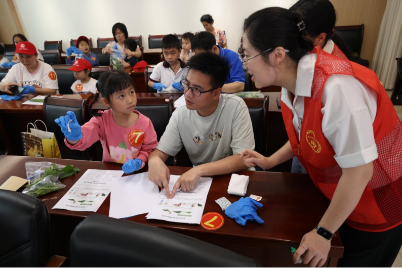 家长和学生们通过扫描二维码参取问卷查询拜访,“小小食安检测员”的孩子们拿到了他们的第一份食物平安检测演讲单。这种融合阅读取实践的科普宣传模式,既促进了亲子感情,工做人员向亲子家庭细致引见意愿团队的成立布景和主要意义,